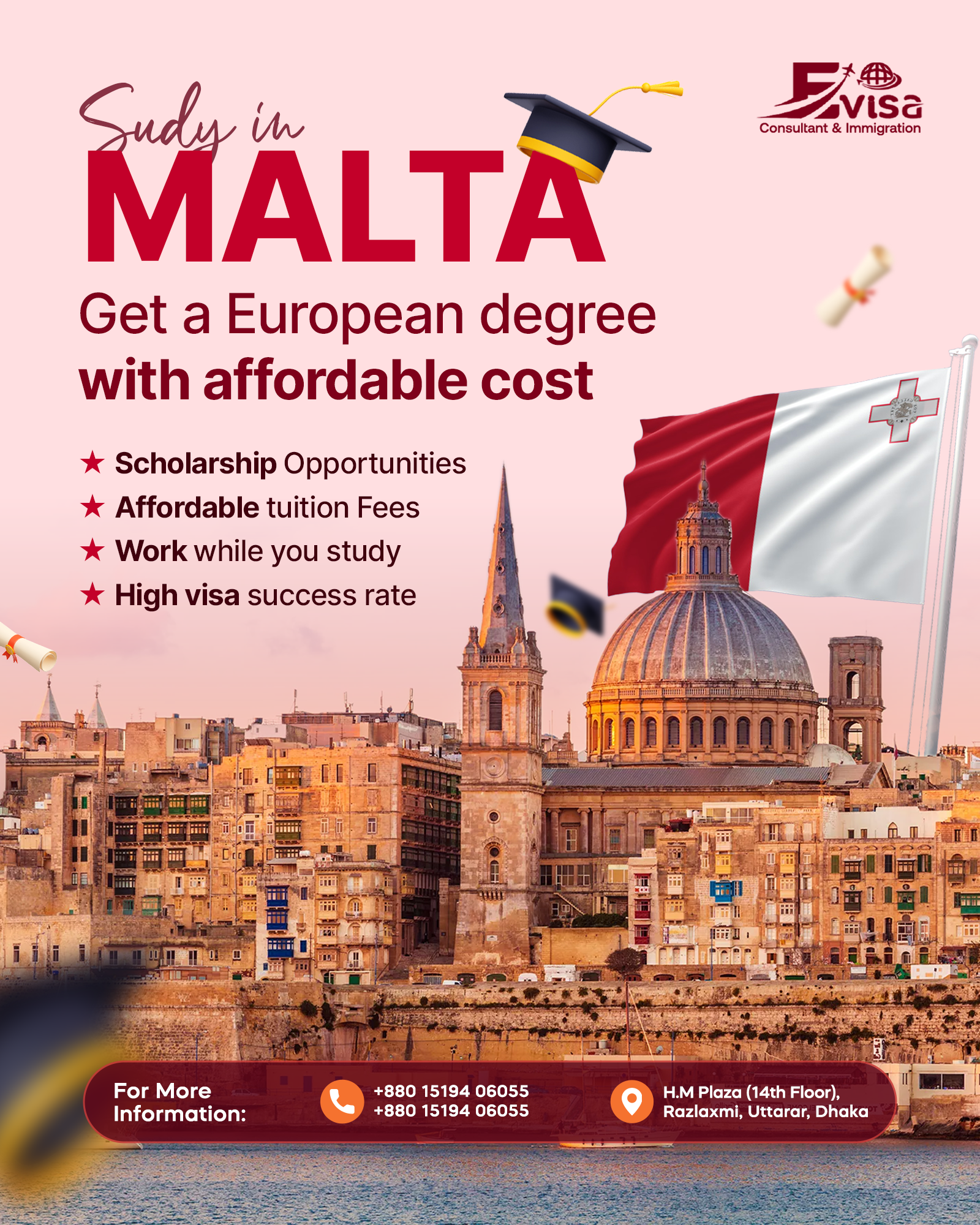 Common documents include academic transcripts, language test scores, proof of funds, admission letters, and a valid passport. We provide a full checklist during the process.